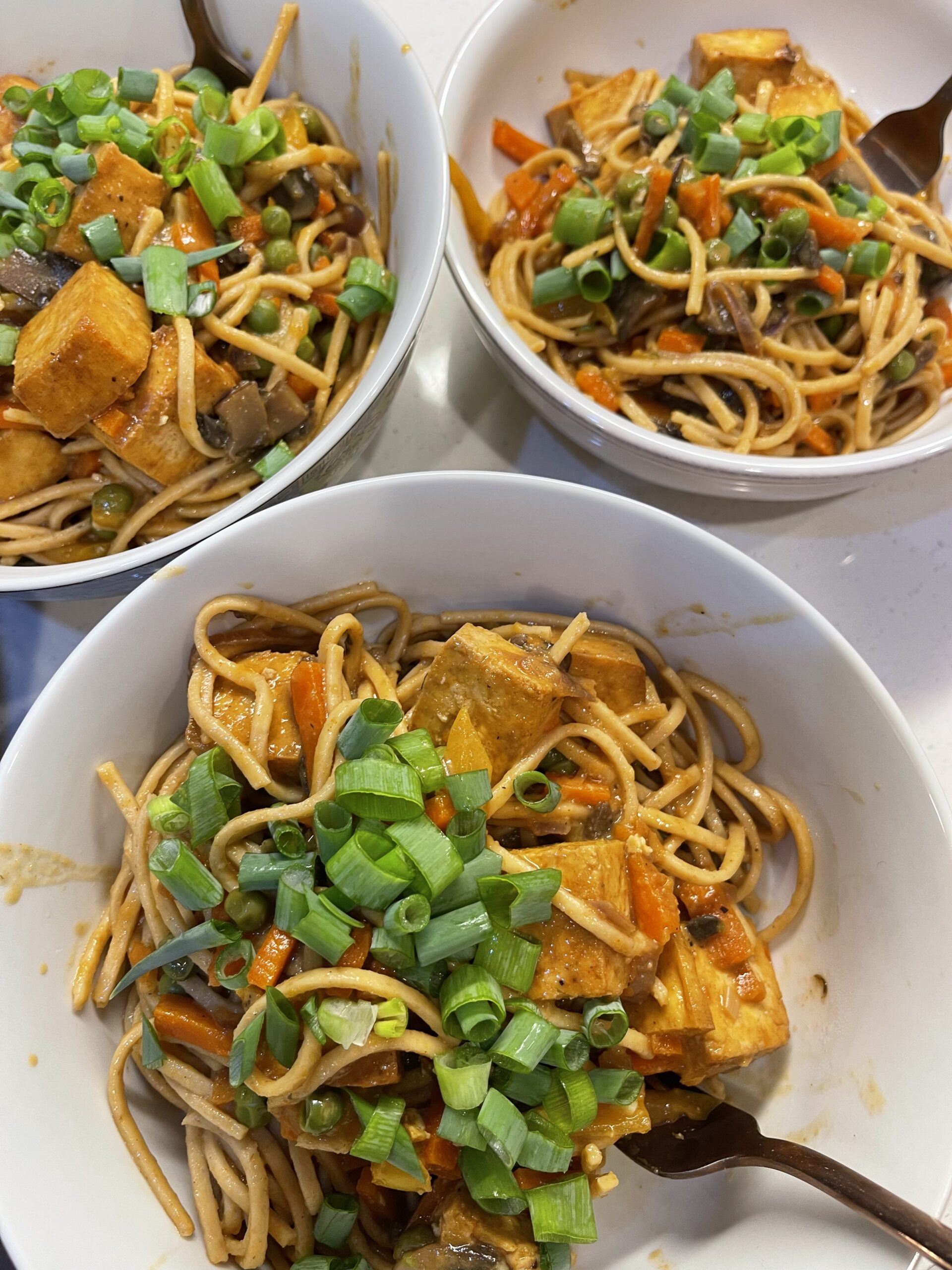 - Vegan pad Thai with a sunflower butter “peanut” sauce