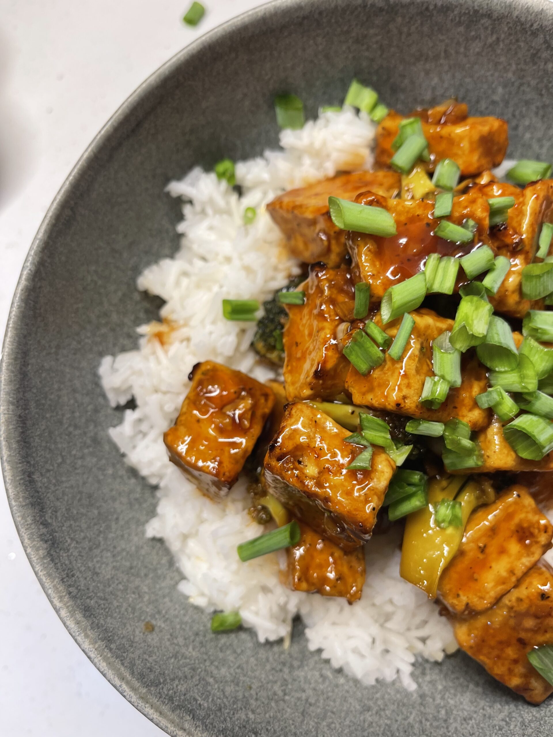- Squeeze an orange into the sauce for sticky orange tofu! I love baking or air frying cubes of tofu, with just salt and pepper, sometimes some ginger powder and bake for about 20 minutes until crispy! This sauce is incredible over the top and especially nostalgic with the orange flavor!